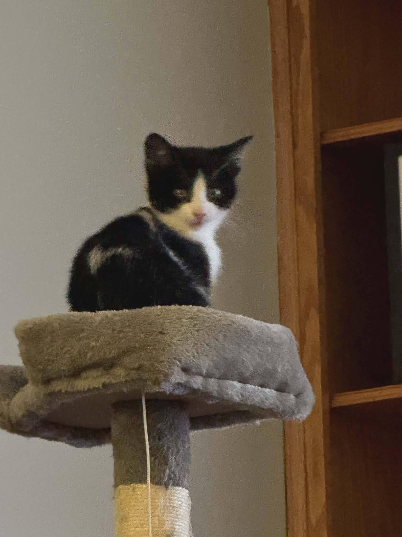 Meet Douglas. This sweet kitten is 3 months old now. He is a sweet & gentle little guy who like most kittens loves to run & play. He is on the shier side and is the last kitten from his litter looking for a forever home. Douglas is good with the dog and other cats in his foster home. He needs to go to a home with another young playful cat.