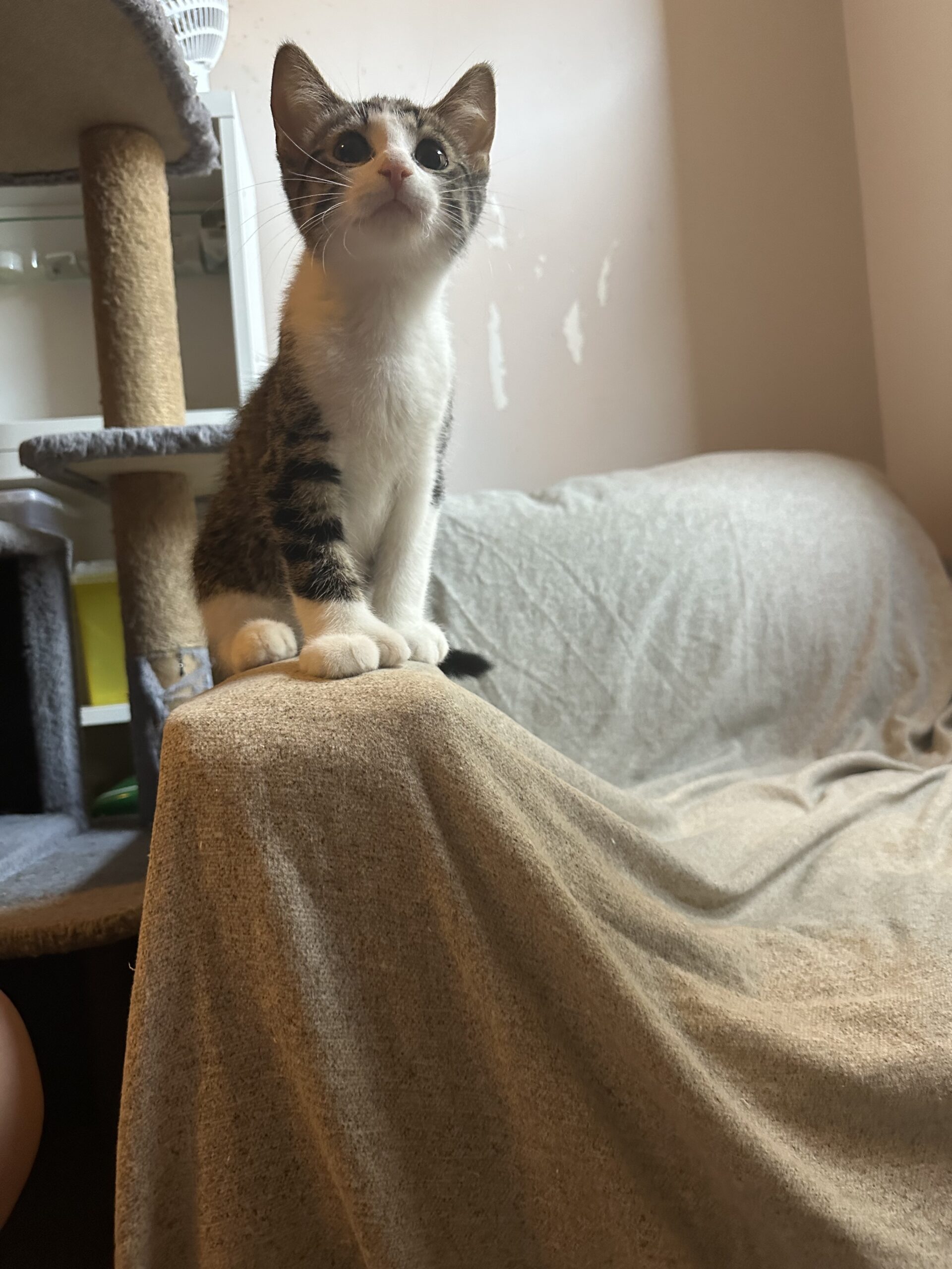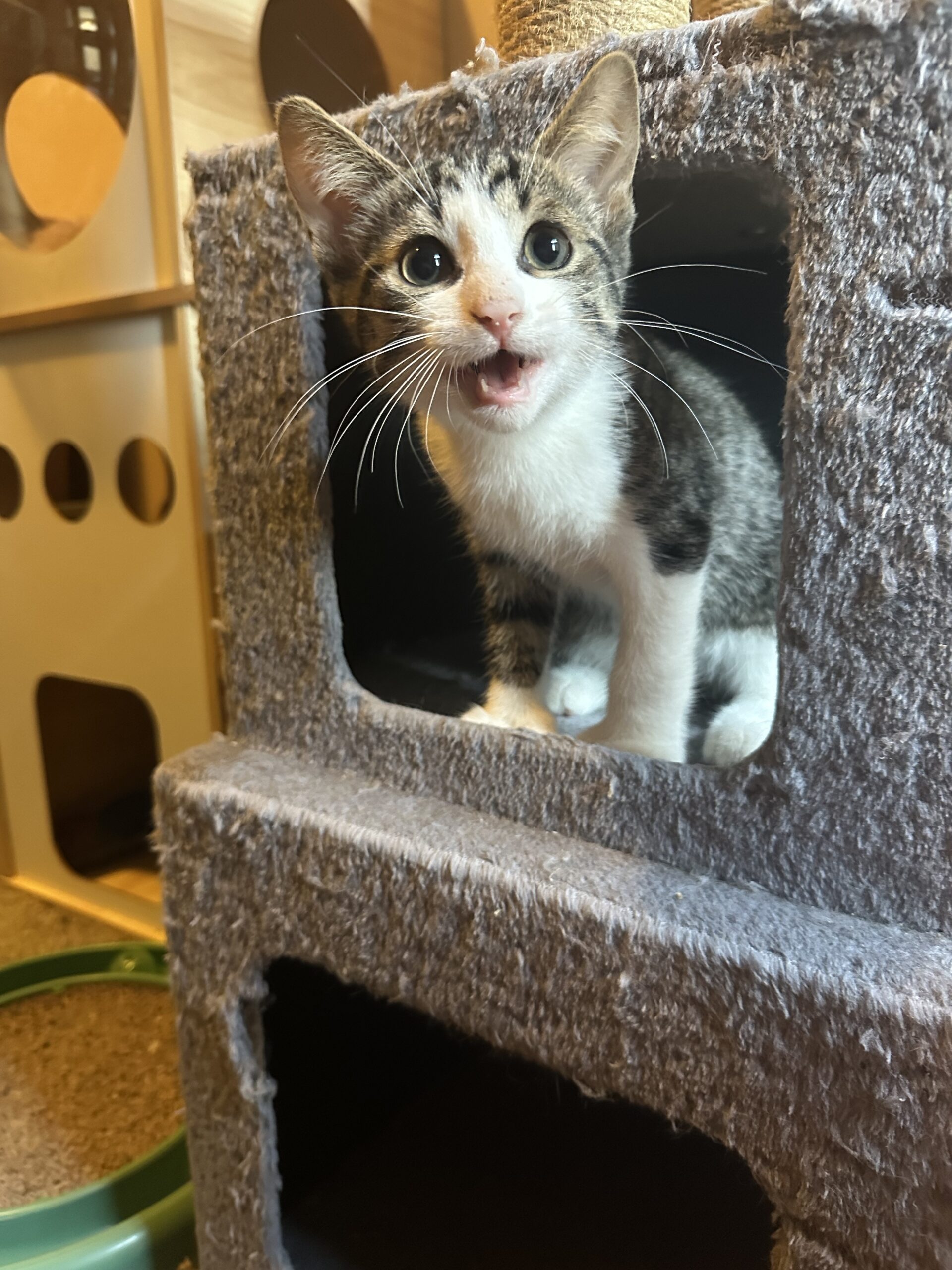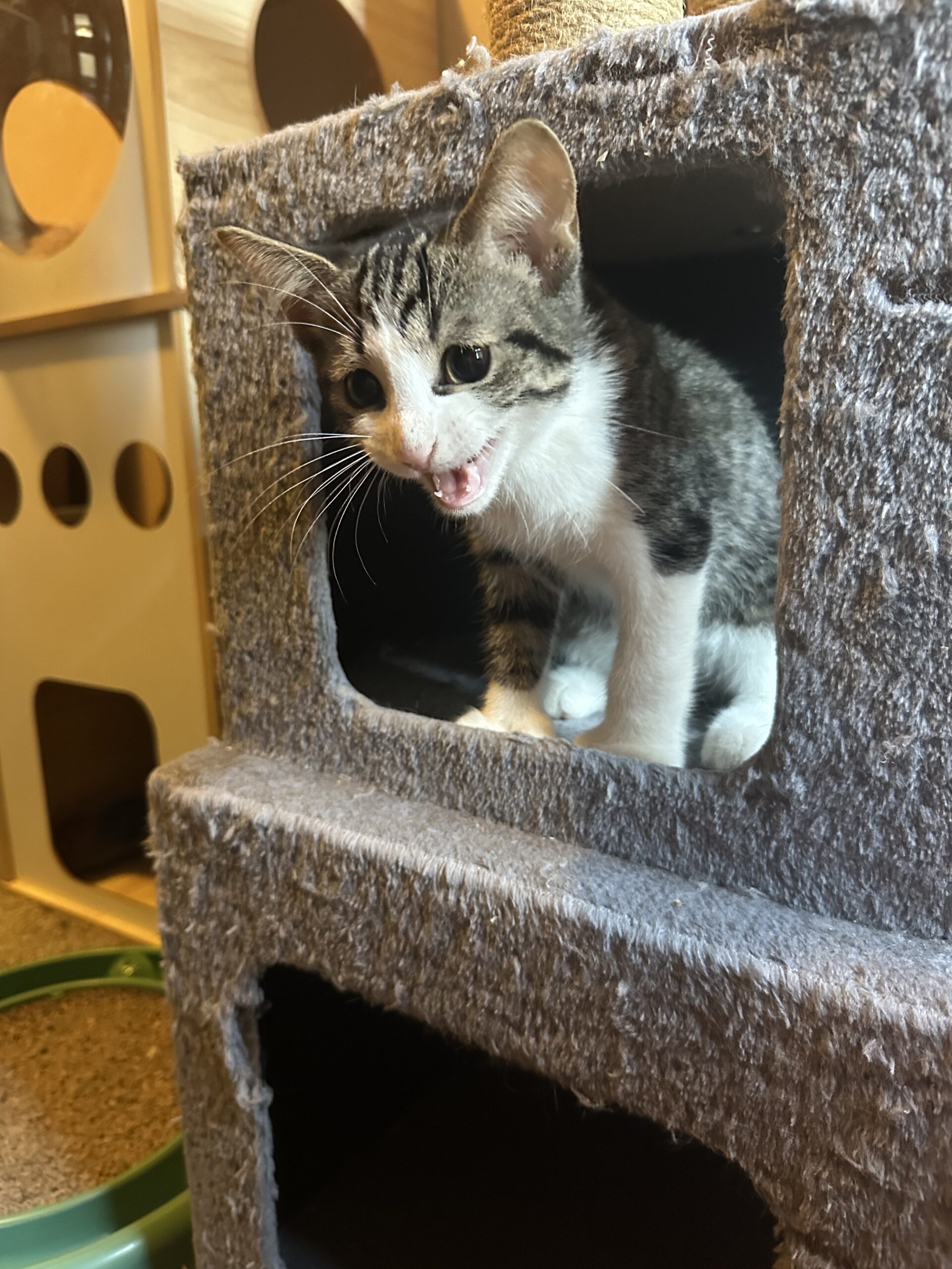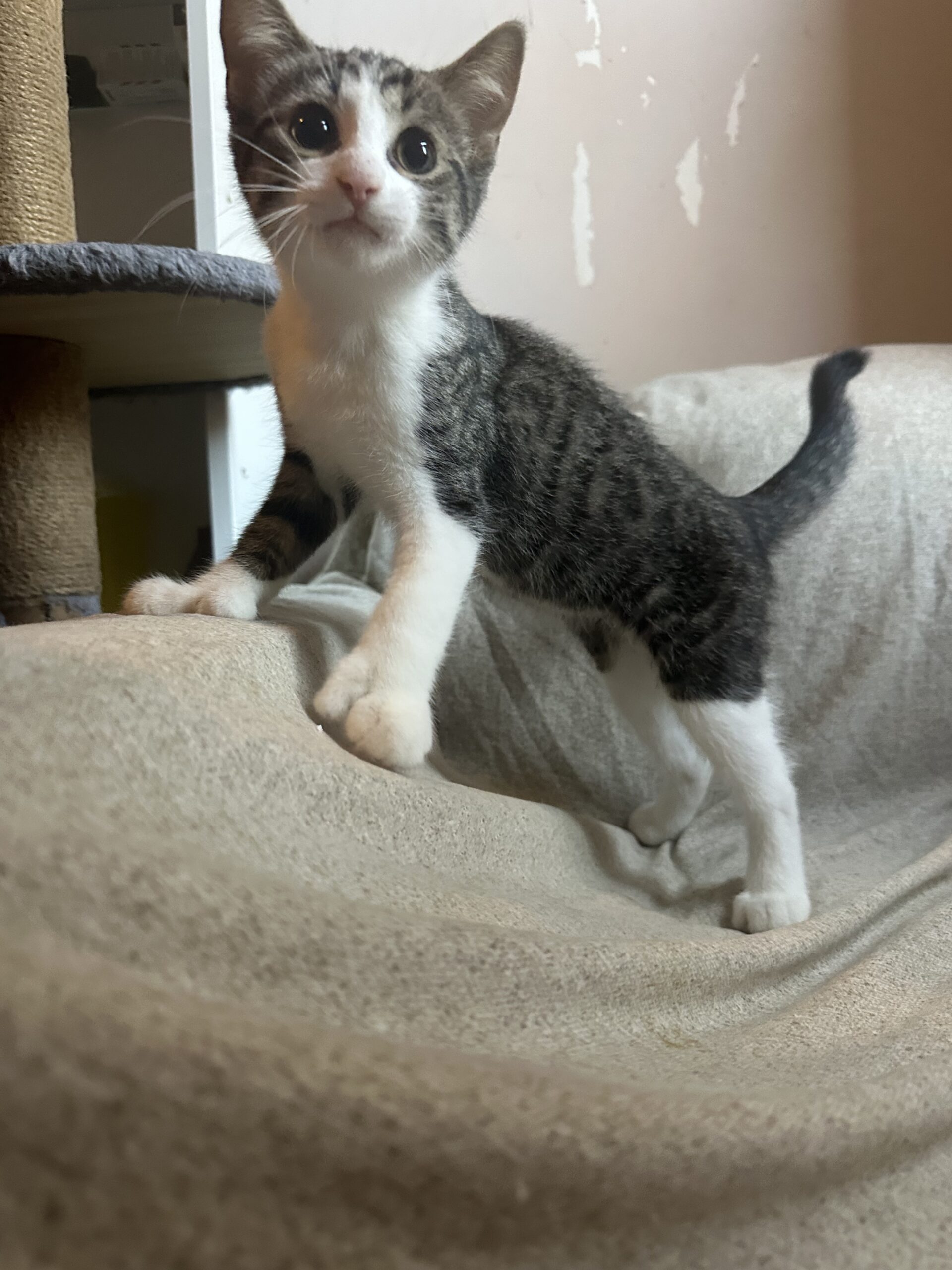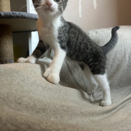 Though his gang has been arrested, Langston’s heart still rides with his brother, Fitzgerald. They’d make a legendary duo if adopted together, but it ain’t a deal-breaker—so long as Langston rides out with another young cat. He’s untested with dogs, but confident enough to stare down a cactus. One thing’s for sure: Langston’s lookin’ for a forever home with room to run, mischief to make, and someone to admire his… handywork.