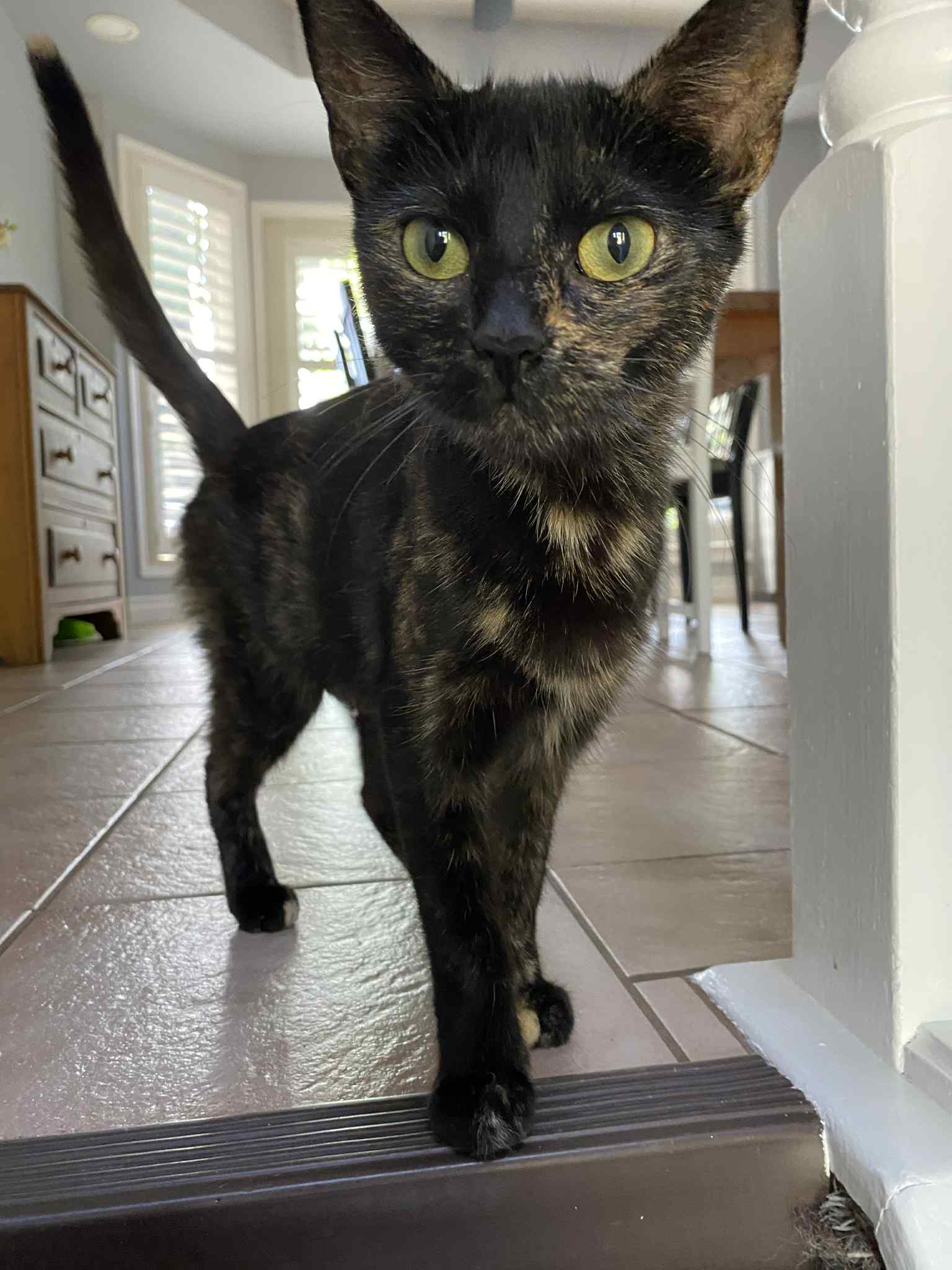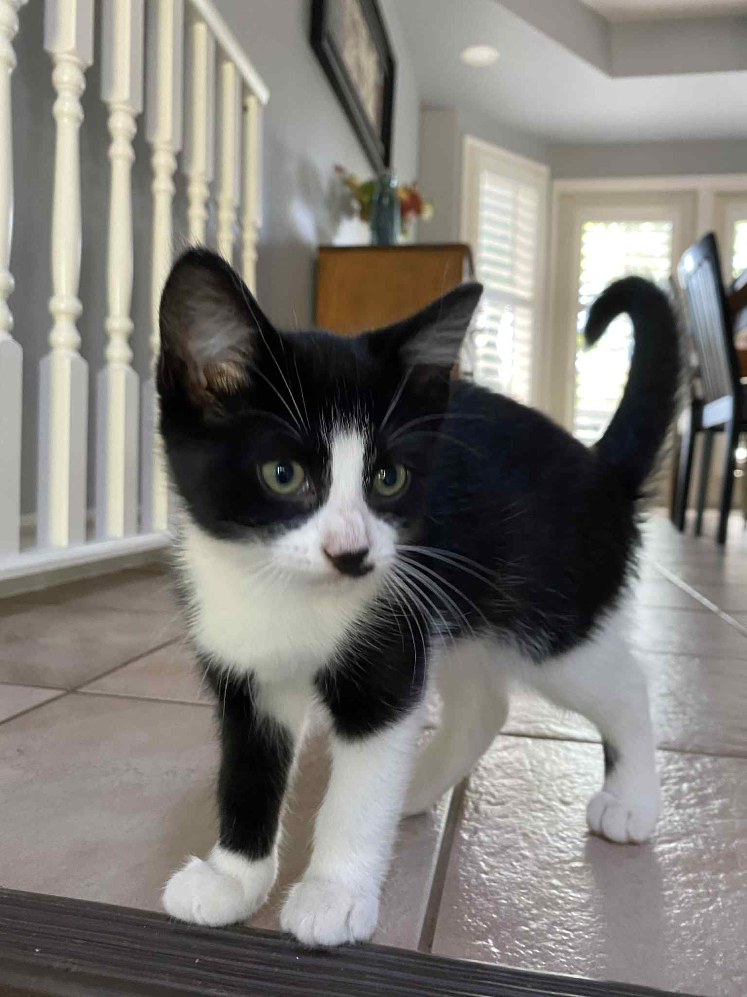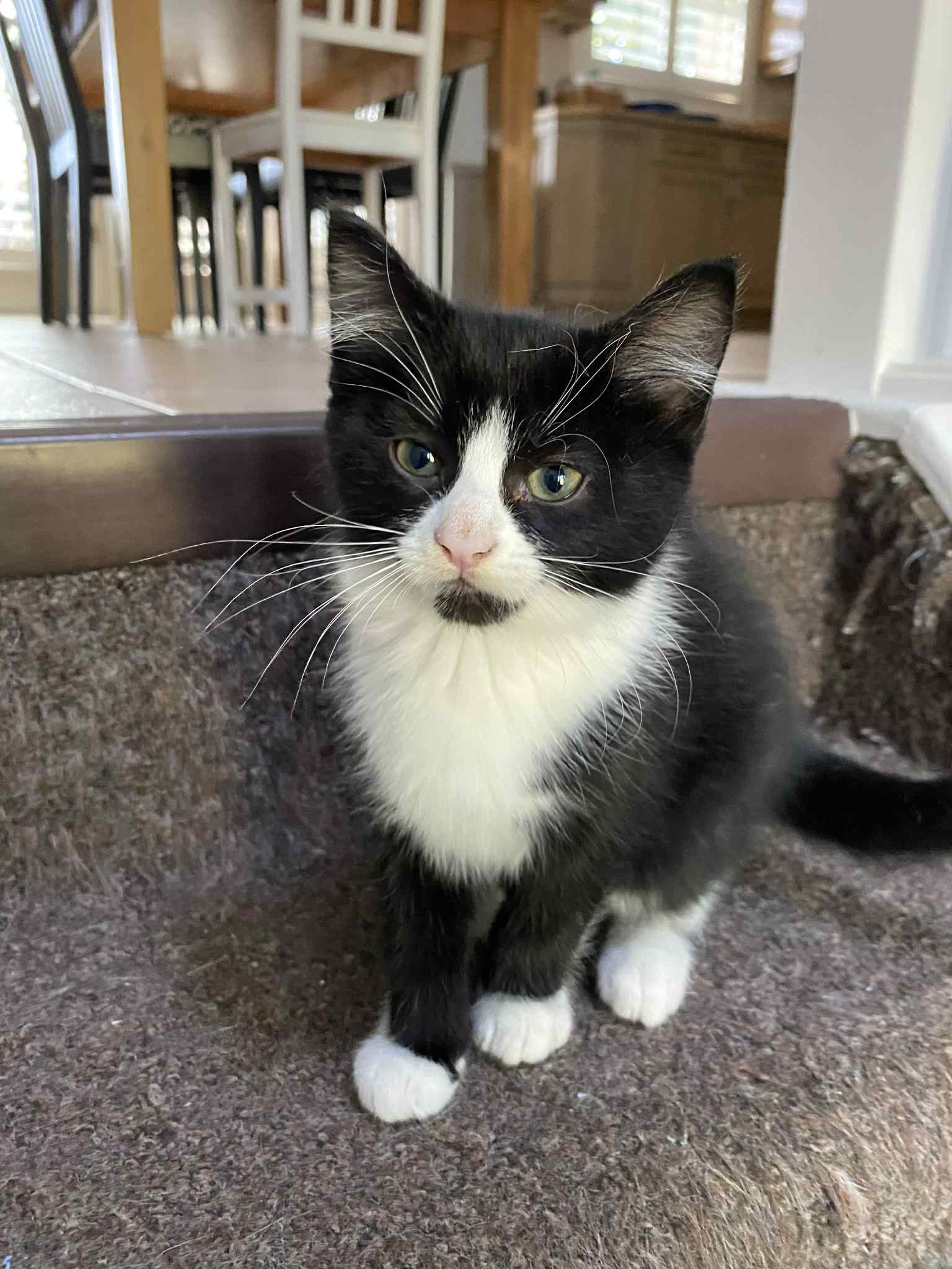 Meet Toffee and her kittens – Miso (Female Tuxedo) & Oreo (Male, Black & White). Toffee is about 2 years old and her kittens are about 12 weeks. Miso & Oreo are super friendly and snuggly. They love to play. They also love to be picked up, snuggled and held. Their mom, Toffee, is a quiet, gentle cat – a little more on the shy side. She loves to be pet and will be picked up but doesn’t like to be held for too long. Toffee has beautiful Tortoiseshell colouring!